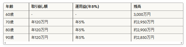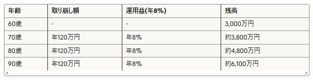 60歳から90歳までの推移(優良アクティブ+投資用マンション):
